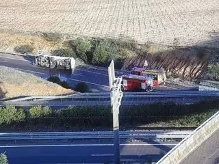 El vuelco de un camión de mercancías peligrosas ha provocado el corte del tráfico en el enlace de las autovías A-5 y A-66 en Mérida, lo cual está provocando retenciones en la circulación en ambas carreteras.