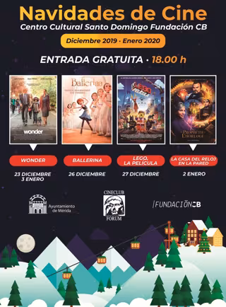 El Cine Club Forum de Mérida ha organizado 'Navidades de Cine' con el objetivo de acercar películas de animación a los más pequeños y donde se podrá disfrutar de 'Wonder', 'Ballerina', 'Lego, la película' y 'La casa del reloj en la pared'.