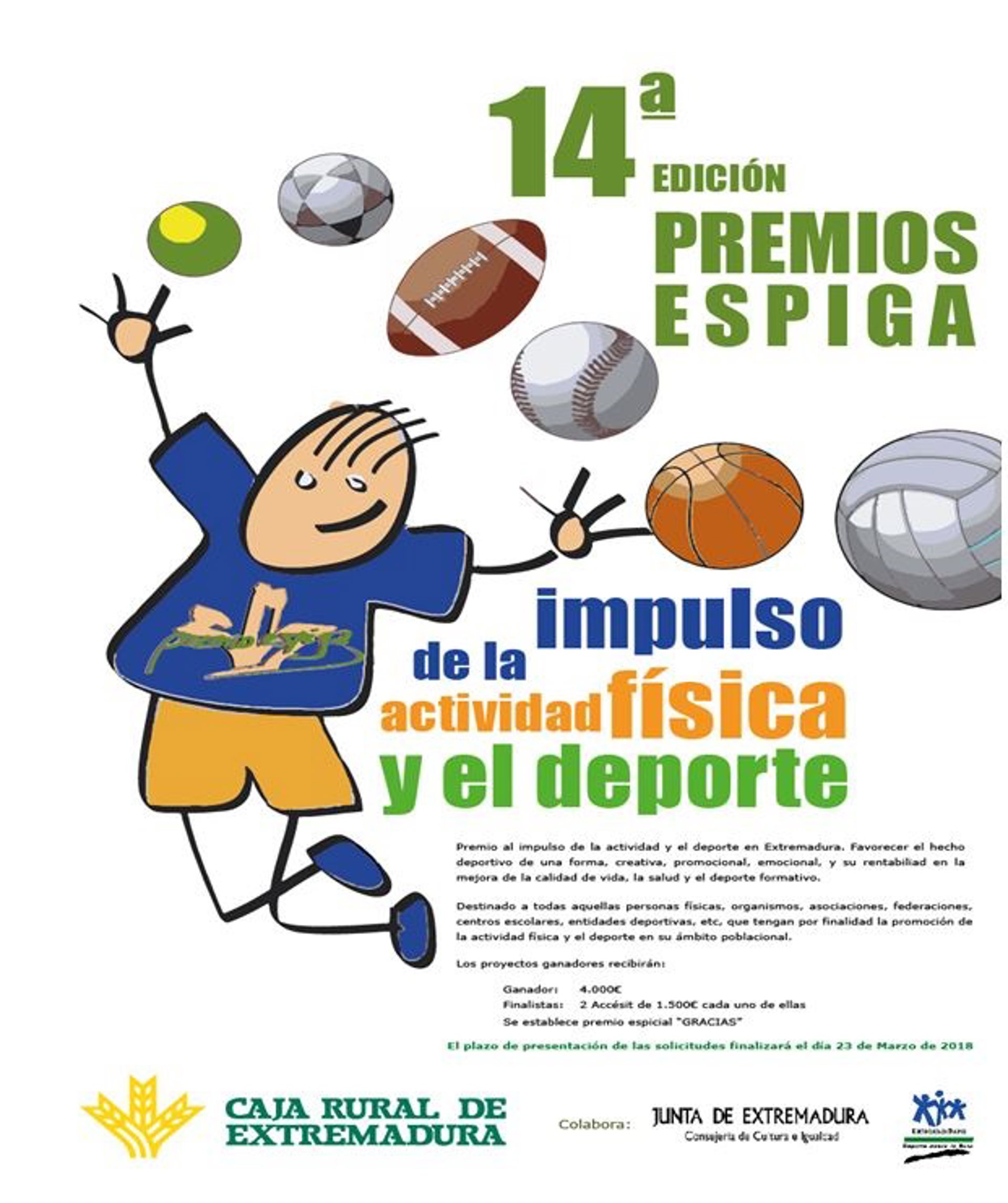 La presentación de candidaturas al XIV Premio Espiga al Impulso de la Actividad Física y el Deporte, que convoca Caja Rural de Extremadura, permanecerá abierta hasta este próximo viernes, 23 de marzo.