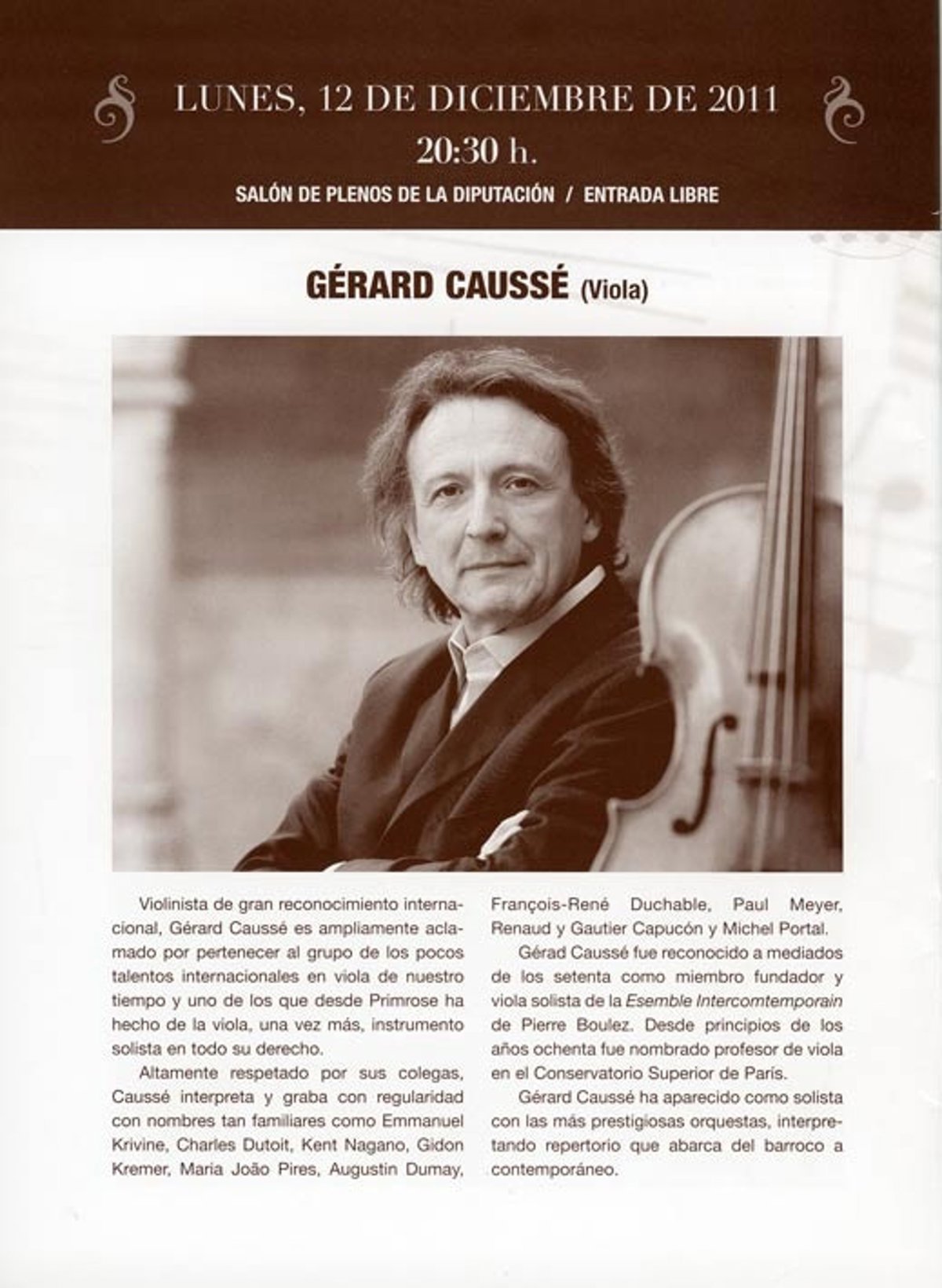 La directora del Conservatorio de Música que organiza este ciclo musical, Miren Gabirondo, ha destacado que Caussé es "un violista de gran reconocimiento internacional que tras el éxito obtenido en la pasada edición de la Semana de Santa Cecilia regresa de nuevo con un atractivo y comprometido programa".