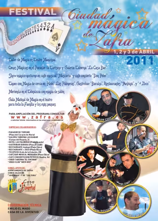 El I Festival de Magia 'Ciudad de Zafra', organizado por la Concejalía de Juventud y Emilio El Mago y se celebrará en esta localidad del 1 al 3 de abril, cargado de espectáculos dirigidos a todos los públicos y en distintas franjas horarias.