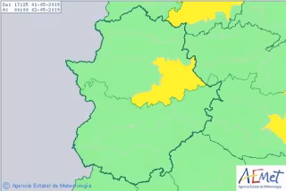 La zona de Villuercas y Montánchez, en la provincia de Cáceres, estará en aviso amarillo por tormentas hasta las 20,00 horas de este miércoles, 1 de mayo.