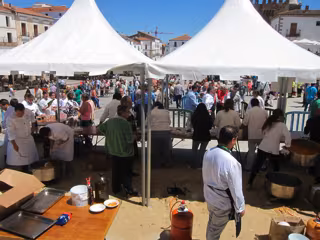 La Plaza Mayor de Cáceres se ha convertido este jueves en una cocina improvisada en la que se han repartido unas 4.000 raciones de migas y cava extremeño para celebrar el título de Capital Española de la Gastronomía (CEG) que la ciudad ostenta en este 2015.