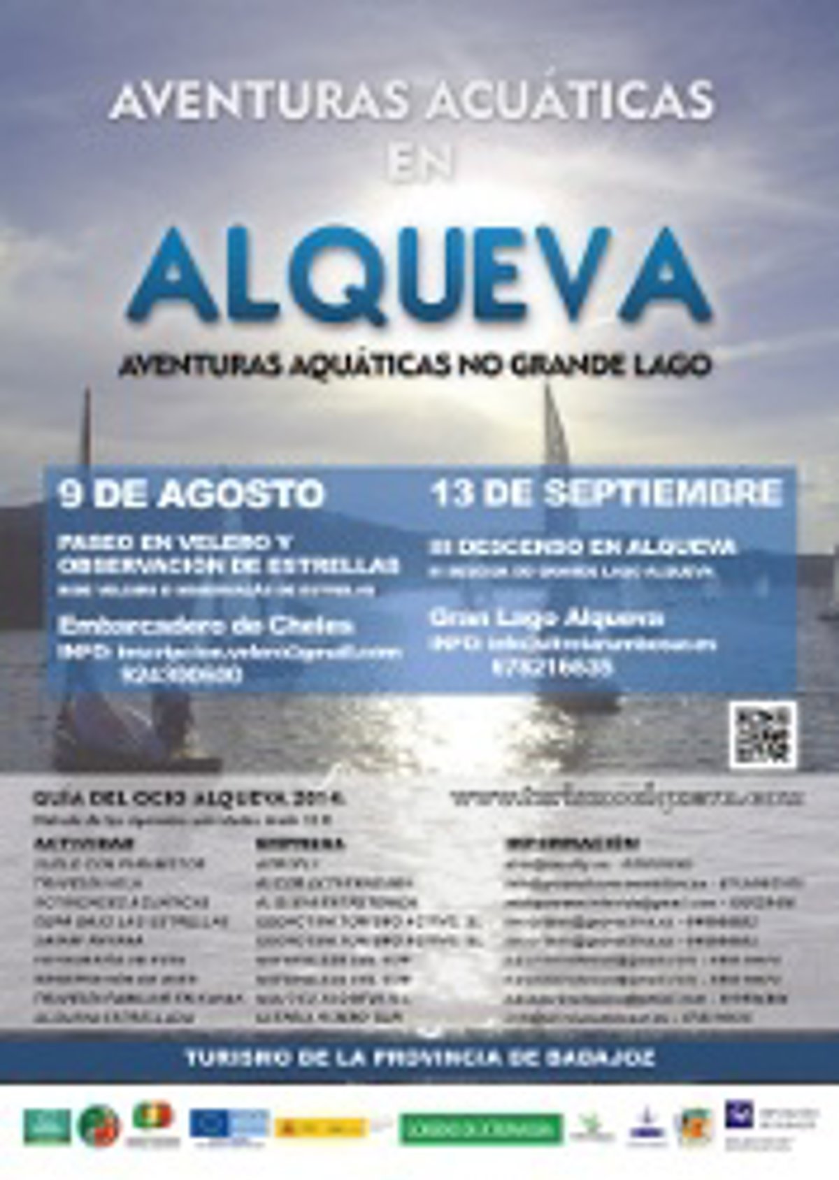 'Aventuras Acuáticas en Alqueva y Guía del Ocio Alqueva 2014' incluye información sobre las dos actividades gratuitas organizadas por la Diputación de Badajoz y que son el Paseo en Velero y Observación de Estrellas, el 9 de agosto, y III Descenso en Alqueva, el 13 de septiembre.