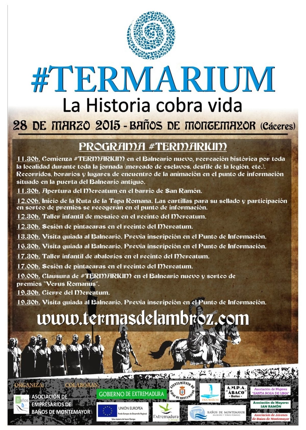 Asimismo, para tener más información acerca del programa, u horarios se puede acceder a las páginas web www.termasdelambroz.com y www.villatermal.com, o el mismo día de #Termarium en el punto de información que se habilitará al efecto.