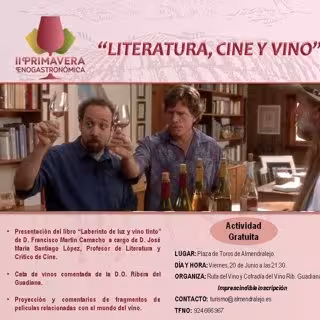 Le seguirán una cata comentada de vinos de la D.O. Ribera del Guadiana y una proyección de fragmentos de películas relacionadas con la cultura del vino, donde no podía faltar 'Entre Copas', entre otras.