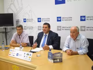 El diputado y el director del área de Igualdad y Desarrollo Local, Manuel Antonio Díaz y Javier Luna, respectivamente, y el gerente del Patronato provincial de Turismo, Juan Pedro Plaza, han presentado en rueda de prensa esta actividad de dificultad media-baja que consistirá de un recorrido en kayak biplaza de aproximadamente 12 kilómetros a través del gran lago de Alqueva con paradas temáticas explicativas y con zonas de ascenso y descenso.