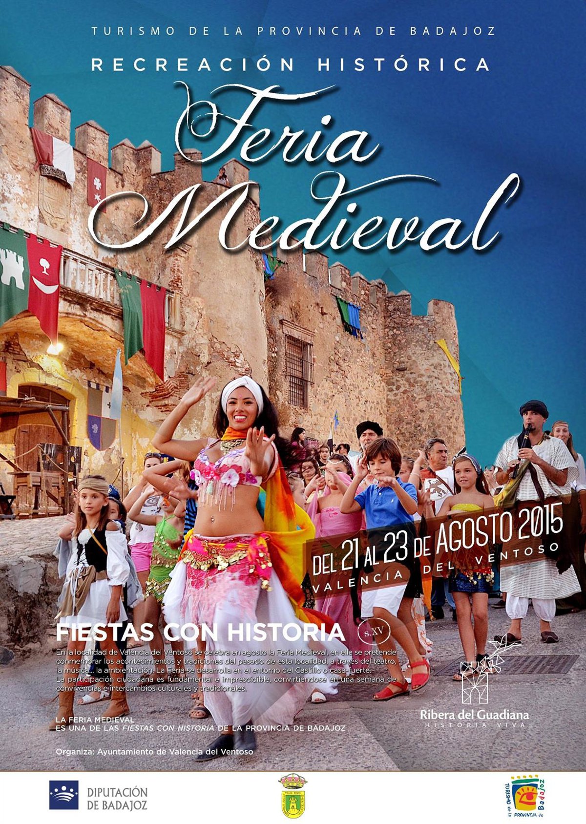La localidad pacense de Valencia del Ventoso celebra, del 21 al 23 de agosto, la segunda Feria Medieval con talleres infantiles y una obra de teatro en torno al castillo-palacio de la Orden de Santiago y la Plaza de la Fuente de Abajo, para poner en valor el patrimonio del municipio.