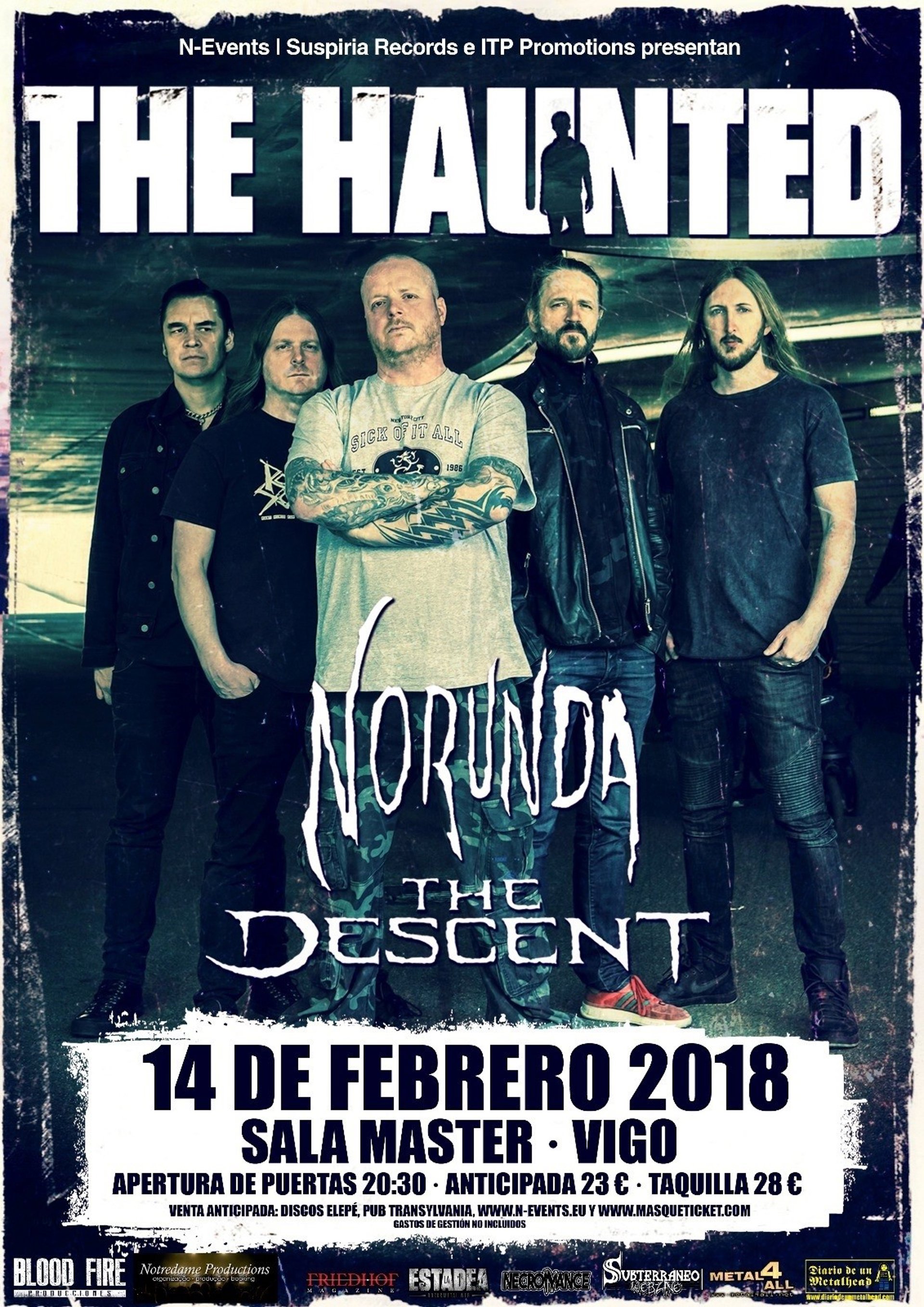 'The Haunted' desembarcará en Galicia por primeira vez este mesmo mércores, 14 de febreiro. En concreto, o show celebrarase na Sala Máster, na cidade de Vigo, no marco dunha xira de 10 datas por toda a Península na que os suecos estarán acompañados de 'Norunda' e 'The Descent'.