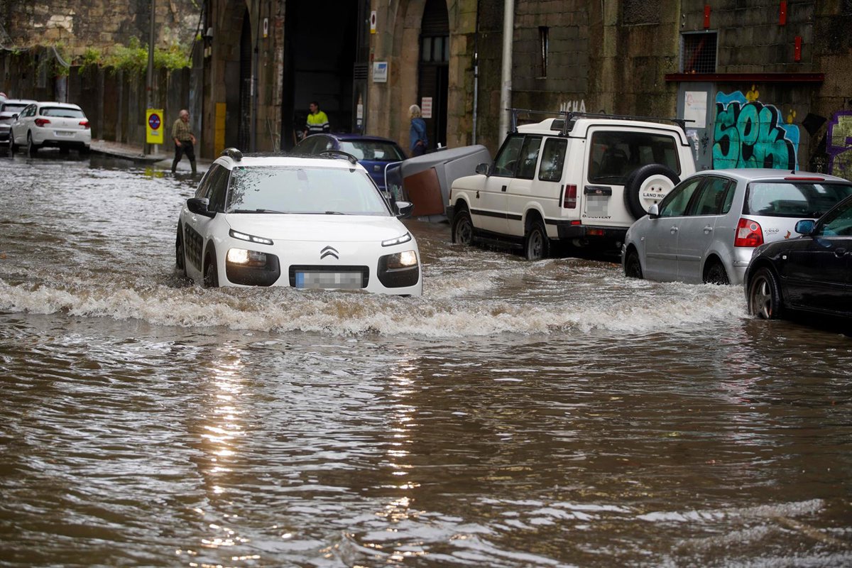 En Brión (A Coruña), a estrada dunha urbanización privada tamén quedou alagada minutos antes das 10,00 horas, polo que se deu aviso á Policía Local.