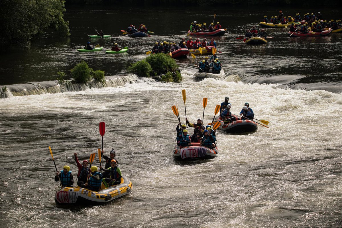 Previamente, decenas de piraguas e embarcacións de ráfting realizaron un descenso reivindicativo polo último tramo do río Ulla, preto da súa desembocadura na ría de Arousa, para denunciar os efectos nos ecosistemas e na calidade das augas que poderían ter ambos os proxectos.