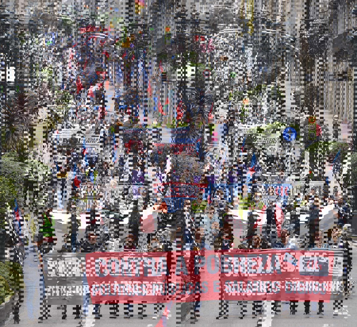 Baixo a lema 'Contra a pobreza. Políticas públicas. Salarios dignos', a marcha saíu pouco despois do mediodía do cruzamento da Dobrada e finalizou na rúa Policarpo Sanz, onde se dirixiron aos participantes o secretario comarcal da CIG, Alberte Gonçalves, e o secretario xeral do sindicato, Paulo Carril.