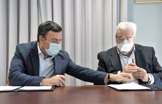 O presidente da Deputación, Valentín González Formoso, e o responsable do Banco de Alimentos de Santiago, José Pita, asinaron este venres o convenio, nun acto no que Formoso destacou "o labor social fundamental" que desempeña a entidade, "sobre todo durante este período de crise sanitaria e económica sen precedentes".