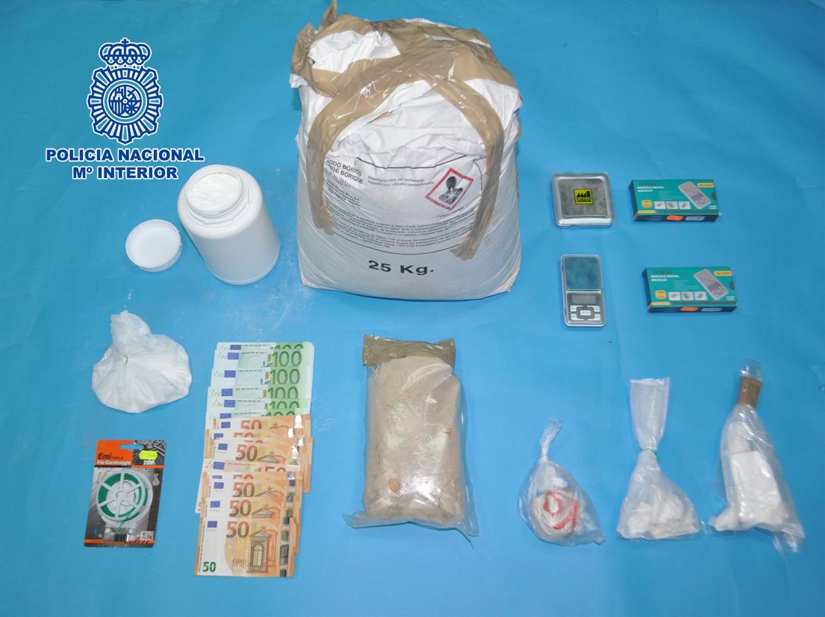 Tras interceptar esta cantidade de droga, a Policía Nacional solicitou unha orde de rexistro da vivenda dun deles. Ao parecer, este inmoble resultaba idóneo para a ocultación do groso das sustancias estupefacientes, así como do instrumental necesario para a adulteración e empaquetado das mesmas.