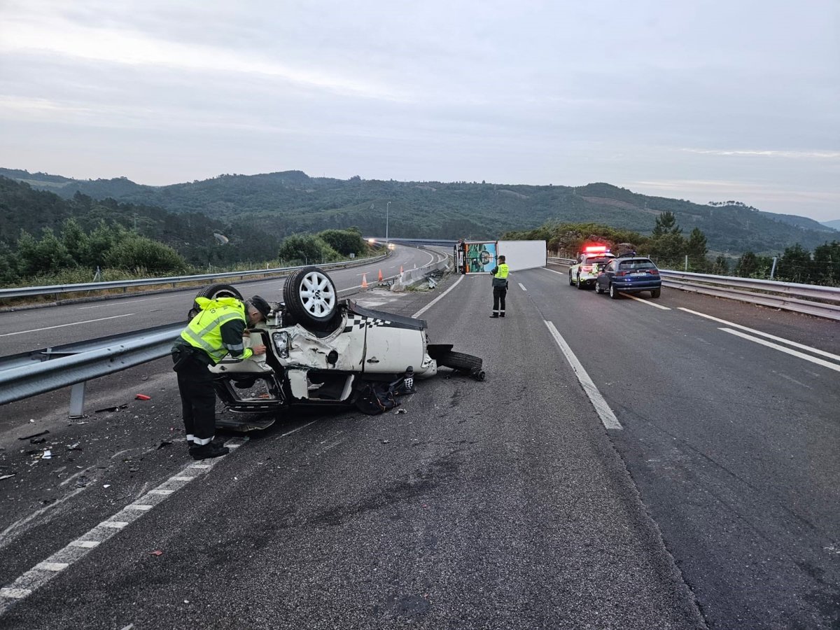 Segundo informou o 112 Galicia, o suceso produciuse sobre as 04.30 horas deste sábado e foi un particular o que alertou de que había un camión envorcado e un turismo con danos no quilómetro 81 da devandita vía.