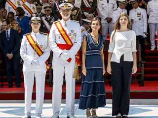 Durante o acto, tamén tomou a palabra o comandante director da Escola Naval, Pedro Cardona Suanzes, que expresou o seu "orgullo" por ver a "unha familia máis" da Armada, a familia real, "soportar a distancia e celebrar o reencontro".