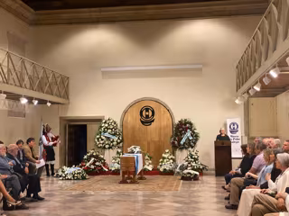 O féretro, situado no centro do auditorio do Museo, estivo cuberto coa bandeira galega e, á súa ao redor, diversos centros florais, a maioría deles, adornados con lazos que simulaban a bandeira da comunidade.