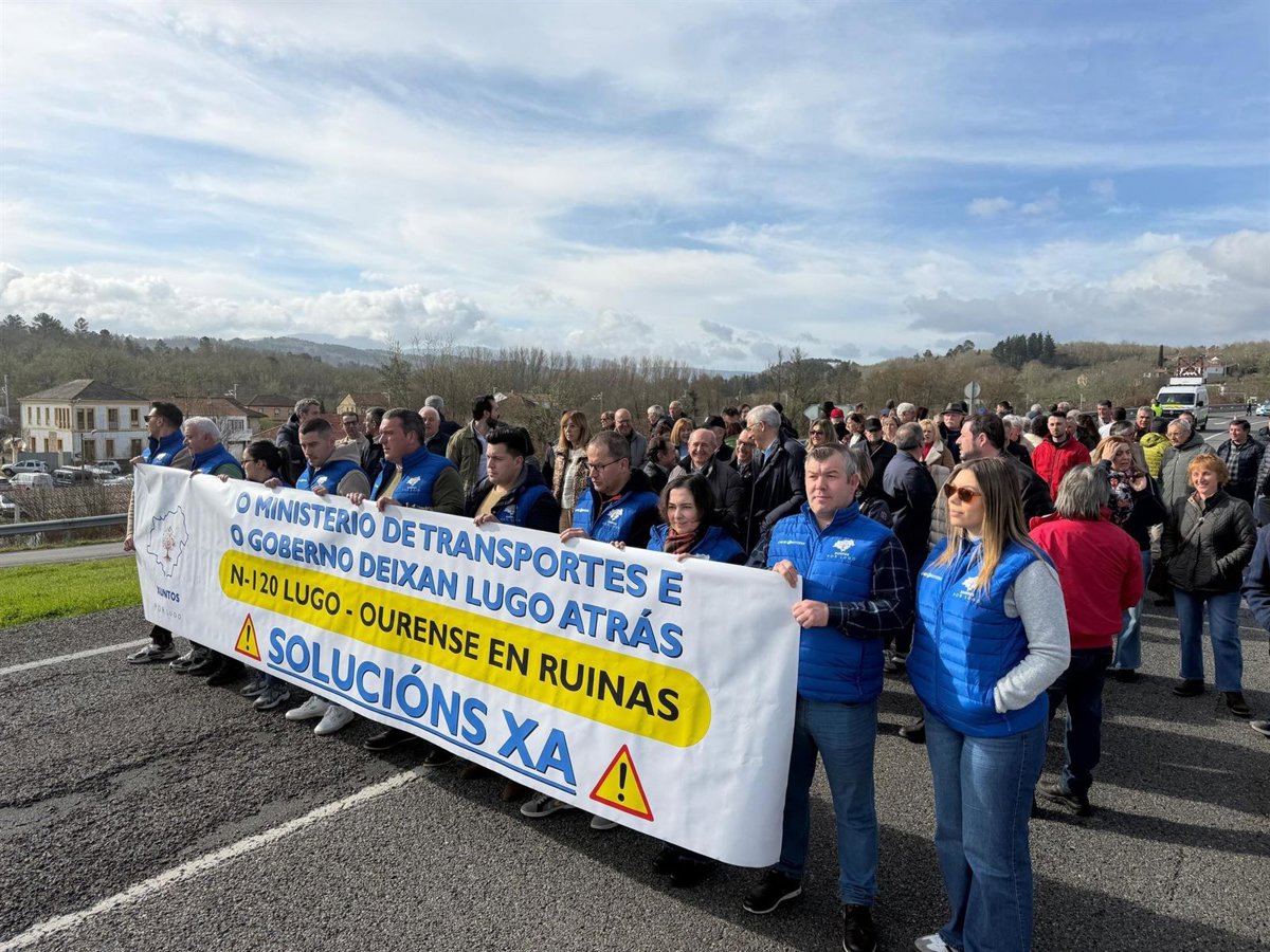 Unha manifestación, convocada pola asociación veciñal Xuntos por Lugo, cortou este sábado a N-120 a altura de Canabal (Lugo) para denunciar o "perigoso estado" da calzada.