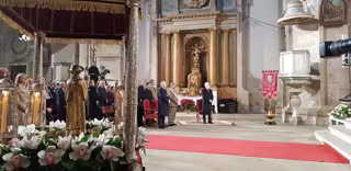 A cerimonia que albergou este luns a igrexa conventual de San Francisco lembra o traslado dos restos do Apostól desde o porto de Jaffa (Xerusalén) ata as costas galegas, onde foron desembarcados no porto de Iria Flavia (Padrón).