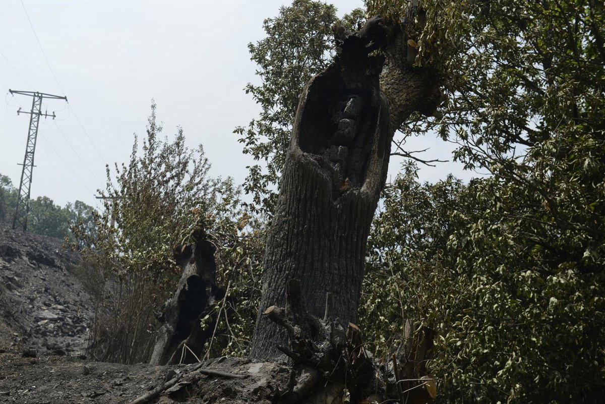 Árboles afectados por el fuego, a 18 de julio de 2022, en O Barco de Valdeorras, Ourense, Galicia (España). La superficie arrasada por los principales incendios registrados en Galicia ya supera las 9.000 hectáreas, según las estimaciones provisionales d - Rosa Veiga - Europa Press