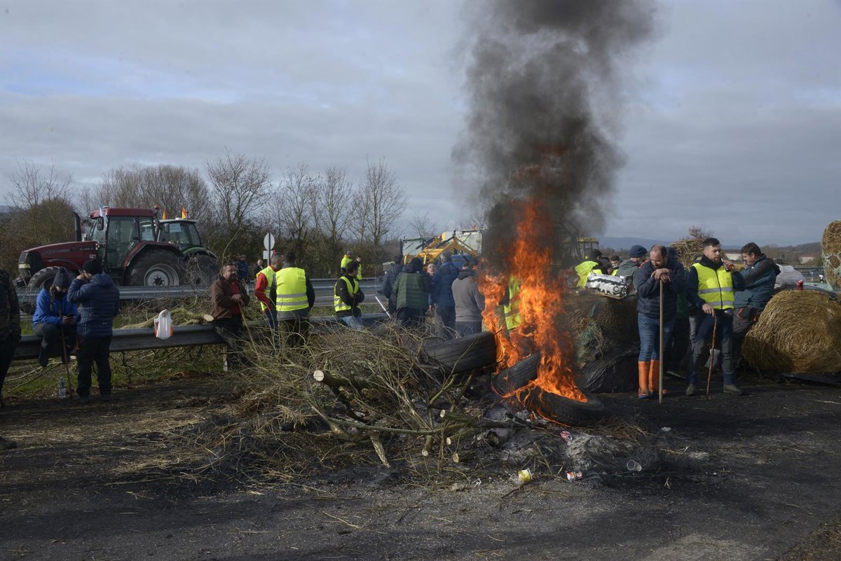 Agricultores y ganaderos cortan la A-52 con tractores y rollos de paja, a 10 de enero de 2026, en Xinzo de Limia, Orense, Galicia (España). - Rosa Veiga - Europa Press