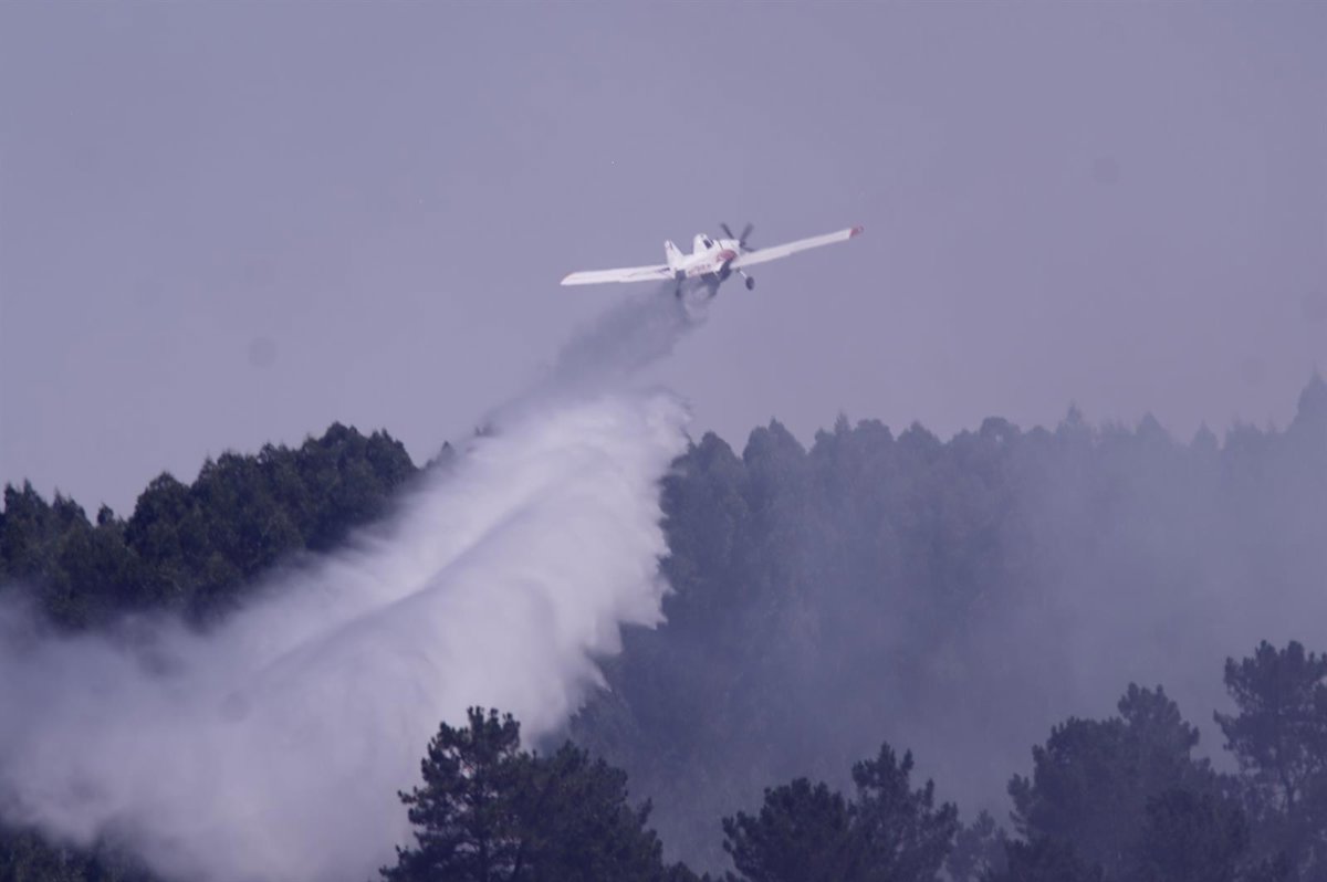 Servicios aéreos tratan de sofocar un conato de incendio en la parroquia de Baamonde, a 9 de agosto de 2025, en Baamonde, Begonte, Lugo, Galicia (España). - Gustavo de la Paz - Europa Press