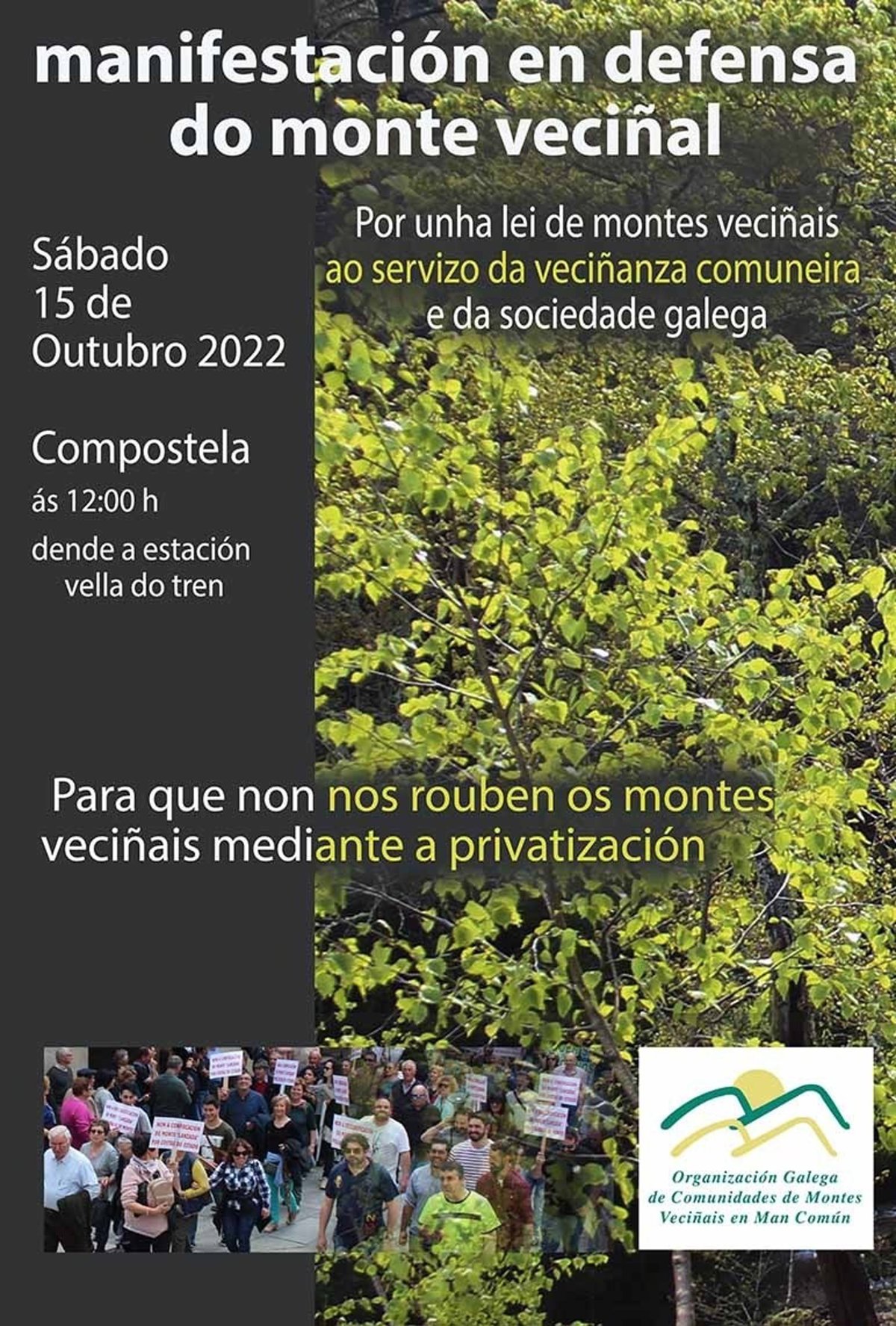 Cártel de la manifestación en defensa del monte vecinal del próximo sábado 15 de octubre - ORGACCMM