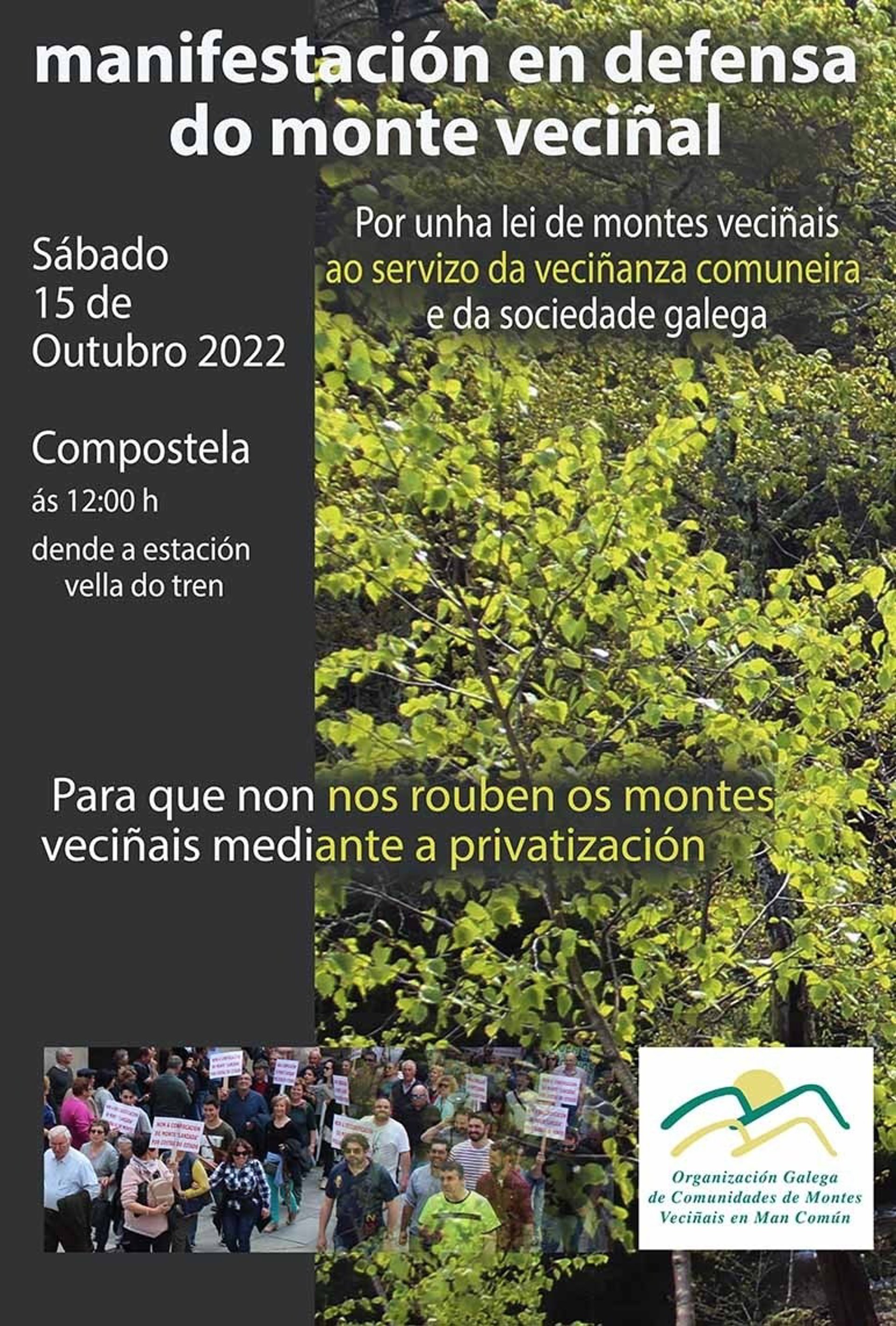 La Organización Galega de Comunidades de Montes Veciñais en Man Común (Orgaccmm) ha convocado una manifestación para este sábado, 15 de octubre, en Santiago de Compostela para defender el monte vecinal.
