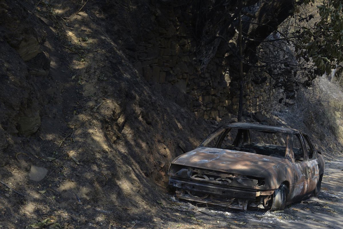 Un coche calcinado tras el incendio en San Vicente de Leira en Villamartín de Valdeorras, Ourense - Rosa Veiga - Europa Press