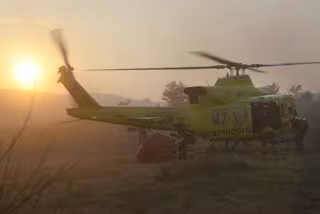 Bomberos preparan el helicóptero para extinguir el incendio, a 2 de agosto de 2025, en Vilardevós, Ourense, Galicia (España). El incendio declarado este sábado, 2 de agosto, en el municipio ourensano de Vilardevós continúa activo y ha calcinado ya 570 hec - Rosa Veiga - Europa Press