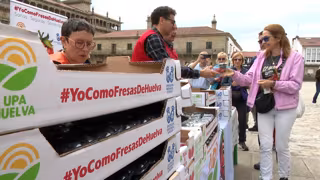 La segunda edición de la campaña '#YoComoFresasDeHuelva' ha terminado este miércoles en la Praza do Obradoiro, en Santiago de Compostela, para repartir 2.000 tarrinas de fresas y otras 2.000 de arándanos --como novedad de este año-- y defender la producción nacional de esta fruta, para que se realice en las condiciones laborales y medioambientales adecuadas.
