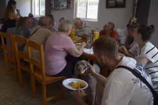 Varios vecinos comen juntos en Cernego en Villamartín de Valdeorras, Ourense - Rosa Veiga - Europa Press