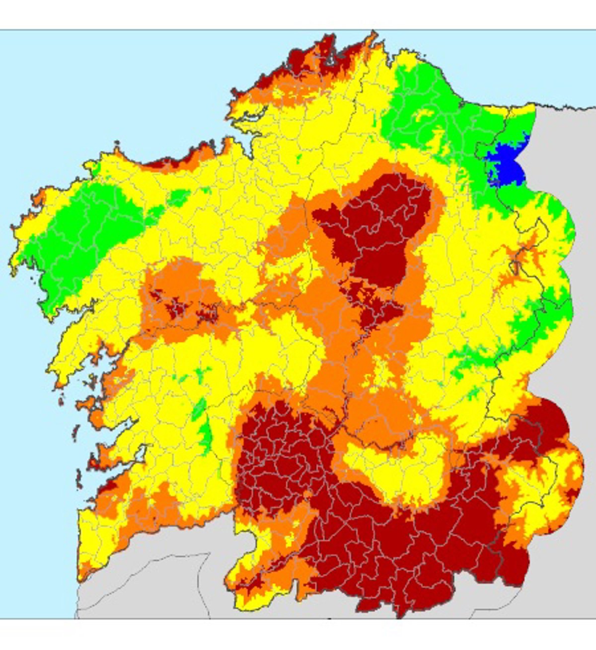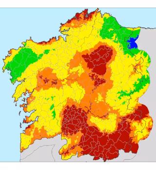 Así figura en el índice de riesgo diario de incendio (IRDI), que publica la Consellería de Medio Rural con base en diversos factores como la sequía, el estado de matorrales y pastos, así como condiciones de temperatura y viento.