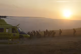 Bomberos preparan el helicóptero para extinguir el incendio, a 2 de agosto de 2025, en Vilardevós, Ourense, Galicia (España). - Rosa Veiga - Europa Press