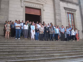 A las 12,00 horas de este lunes, miembros de los cuatro grupos políticos con presencia en la Cámara gallega se han concentrado a las puertas del Pazo do Hórreo.