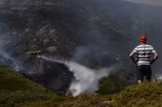 Archivo - Un vecino de Senderiz en Lobeira observa un hidroavión trabajar en el incendio forestal en la Serra do Leboreiro, sobrevuela una explotación ganadera, en el parque natural de Baixa Limia e Serra do Xurés, a 26 de agosto de 2022, en Serra do Xuré - Rosa Veiga - Europa Press - Archivo