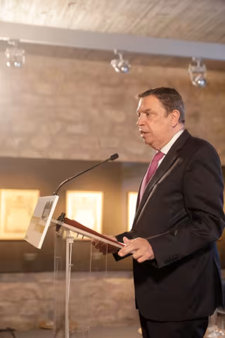 El ministro de Agricultura, Pesca y Alimentación, Luis Planas, durante el encuentro 'Grandes Marcas Españolas' por el centenario de la DOCa Rioja en colaboración con Europa Press, en bodegas Marqués de Murrieta, a 5 de junio de 2025, en Logroño, La Rioja - JPEG - Europa Press