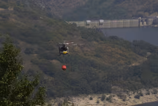 Un helicóptero de extinción recoge agua en el embalse de Chandrexa de Queixa para trabajar en los incendios del Macizo Central - Rosa Veiga - Europa Press