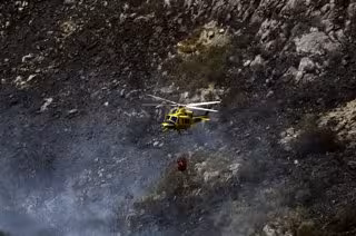 Un helicóptero realiza labores de extinción en el incendio forestal en la Serra do Leboreiro, en el paraje de Corga de Salvante, en el parque natural de Baixa Limia e Serra do Xurés, a 26 de agosto de 2022, en Serra do Xurés, Ourense, Galicia (España). - Rosa Veiga - Europa Press
