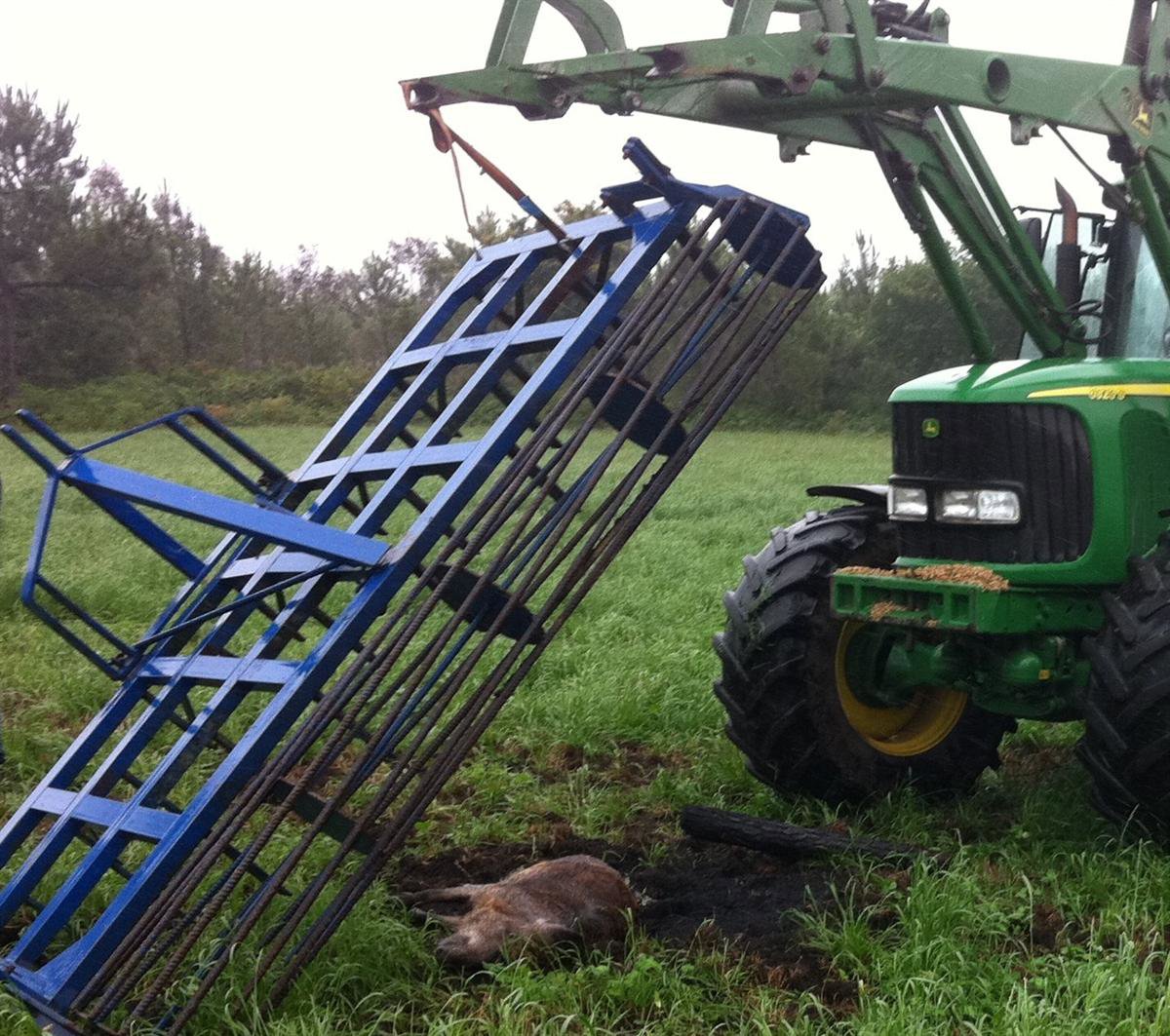 Tras apearse de los vehículos en los que se habían desplazado, estas personas procedieron a retirar un jabalí muerto bajo la grada de tractor, momento en el que fueron identificados por los guardias civiles del Seprona.