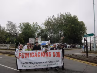 En la marcha, que ha recorrido las calles compostelanas bajo el lema 'Fumigacións non. Por un futuro sen pesticidas' --Fumigaciones no. Por un futuro sin pesticidas-- los asistentes, entre los que se encontraba el nacionalista Xosé Manuel Beiras y la secretaria xeral del Sindicado Labrego Galego, Carme Freire, han coreado consignas como "pesticidas, armas de destrucción masiva" o "estamos que zumbamos".