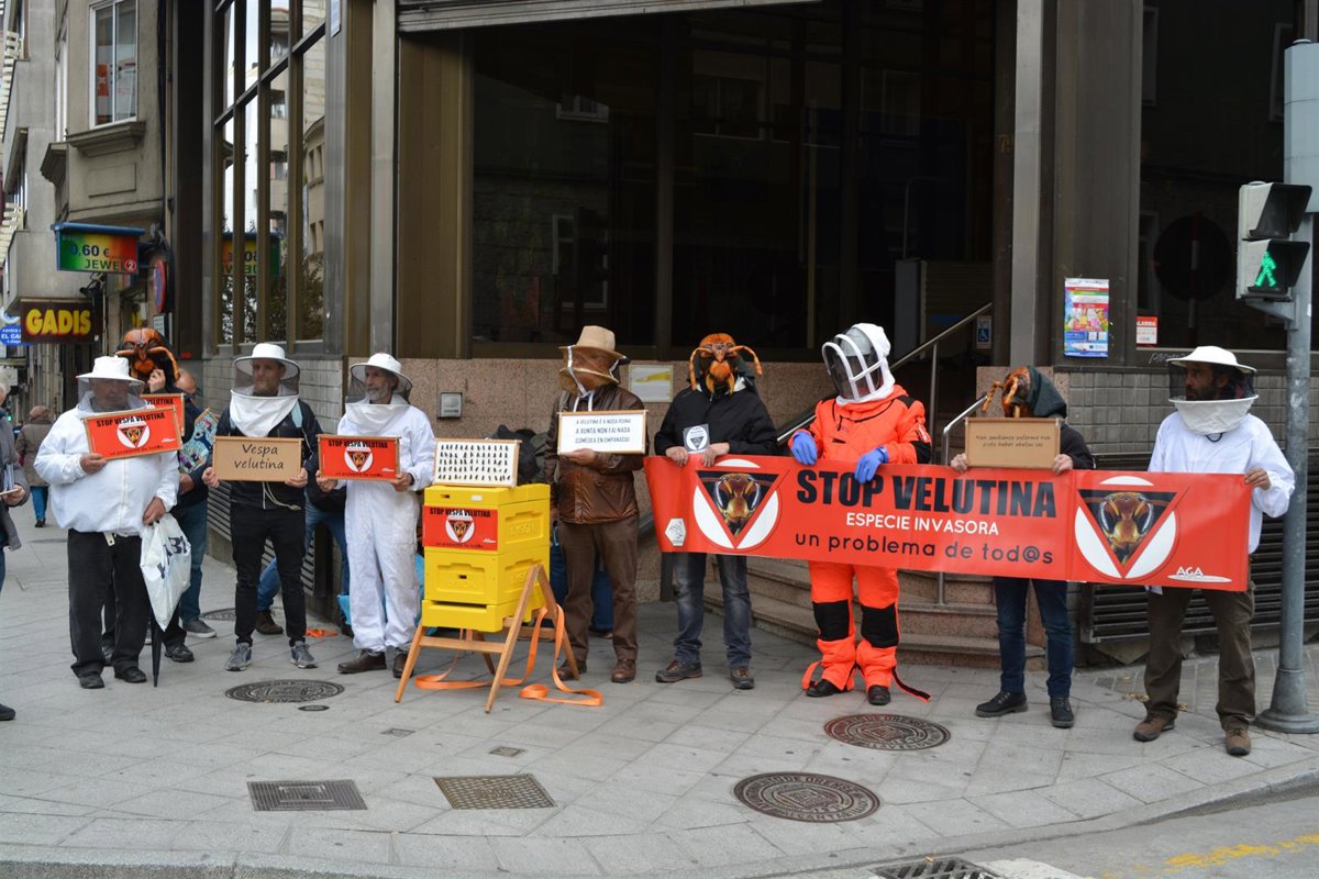 El sector apícola ourensano se ha movilizado este jueves para "llamar la atención" de la Xunta de Galicia ante el "grave problema económico, ambiental y social" que representa para la provincia el avance de la avispa velutina.