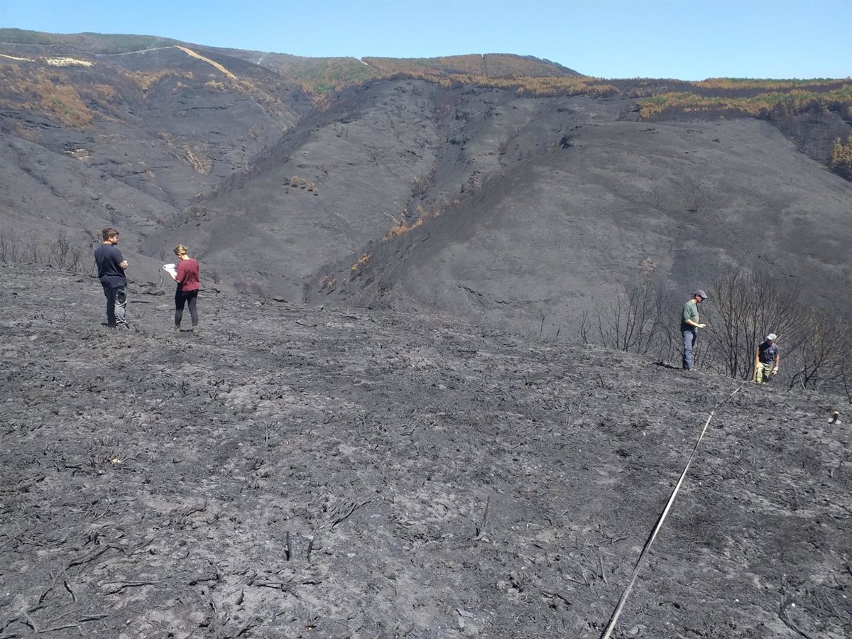 Técnicos del Centro de Investigación Forestal de Lourizán (Pontevedra) evalúan los daños en la Serra do Courel (Lugo) provocados por los incendios. - XUNTA