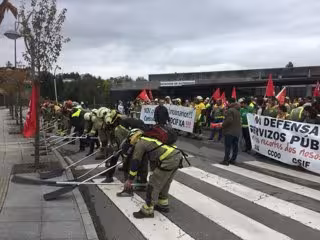 Trabajadores del servicio público de defensa contra los incendios forestales (SPDCIF) se han concentrado ante la Xunta de Galicia en Santiago de Compostela, en el día en que cesan 436 empleados que estuvieron contratados durante cuatro meses, para protestar por la "precariedad laboral", la "temporalidad" y la contratación "a tiempo parcial".