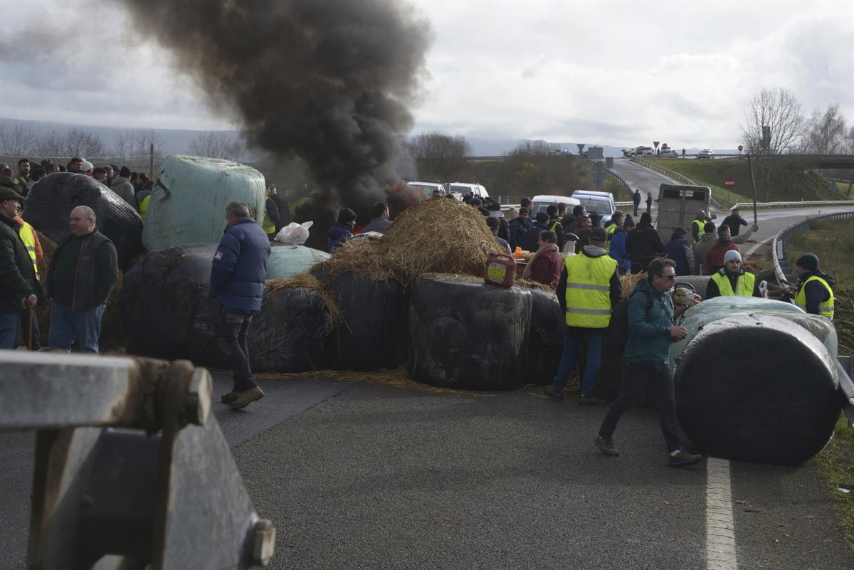 Agricultores y ganaderos cortan la A-52 con tractores y rollos de paja - Rosa Veiga - Europa Press