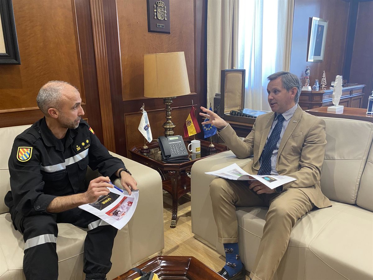 El delegado del Gobierno, José Miñones, mantiene una reunión con el jefe del Quinto Batallón de la Unidad Militar de Emergencias, José Alberto Barja. - DELEGACIÓN DEL GOBIERNO