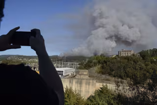 Vista del incendio desde Sampaio, al otro lado del río, a 27 de julio de 2022, en Sampaio, Ribadavia, Ourense, Galicia (España). El incendio forestal ha quemado unas seis hectáreas, según estimación provisional de Medio Rural. La Consellería informa que - Rosa Veiga - Europa Press