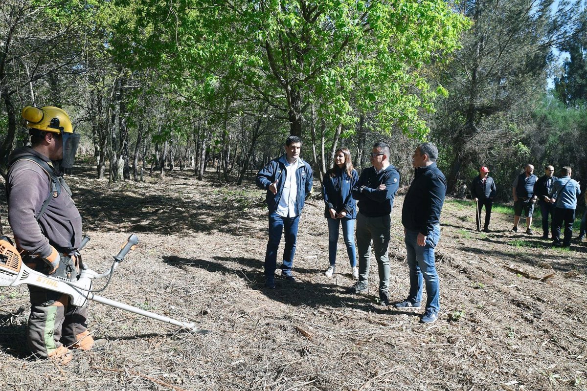El conselleiro do Medio Rural, José González, supervisa las tareas de desbroce en un polígono agroforestal en Ourense. - XUNTA