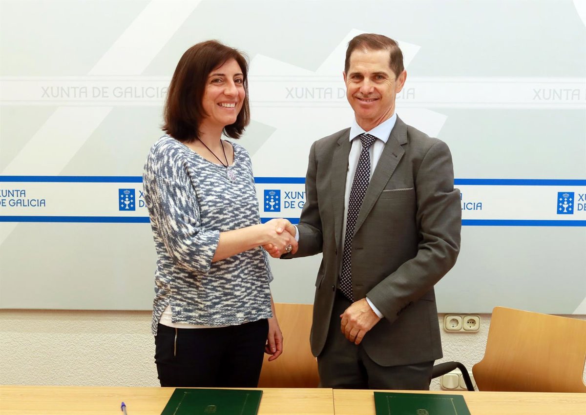 La conselleira do Medio Rural, Ángeles Vázquez, y el presidente de la CHMS, Francisco Marín, han firmado este martes en la Sede de la Xunta un protocolo de colaboración para dar mayor agilidad, eficacia y eficiencia al procedimiento administrativo.