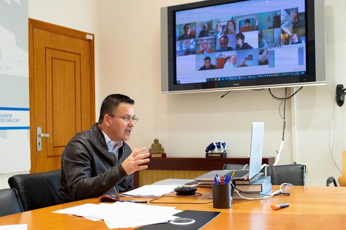 El conselleiro de Medio Rural, José González, durante su videoconferencia con las denominaciones de origen y las indicaciones geográficas protegidas - Xunta de Galicia